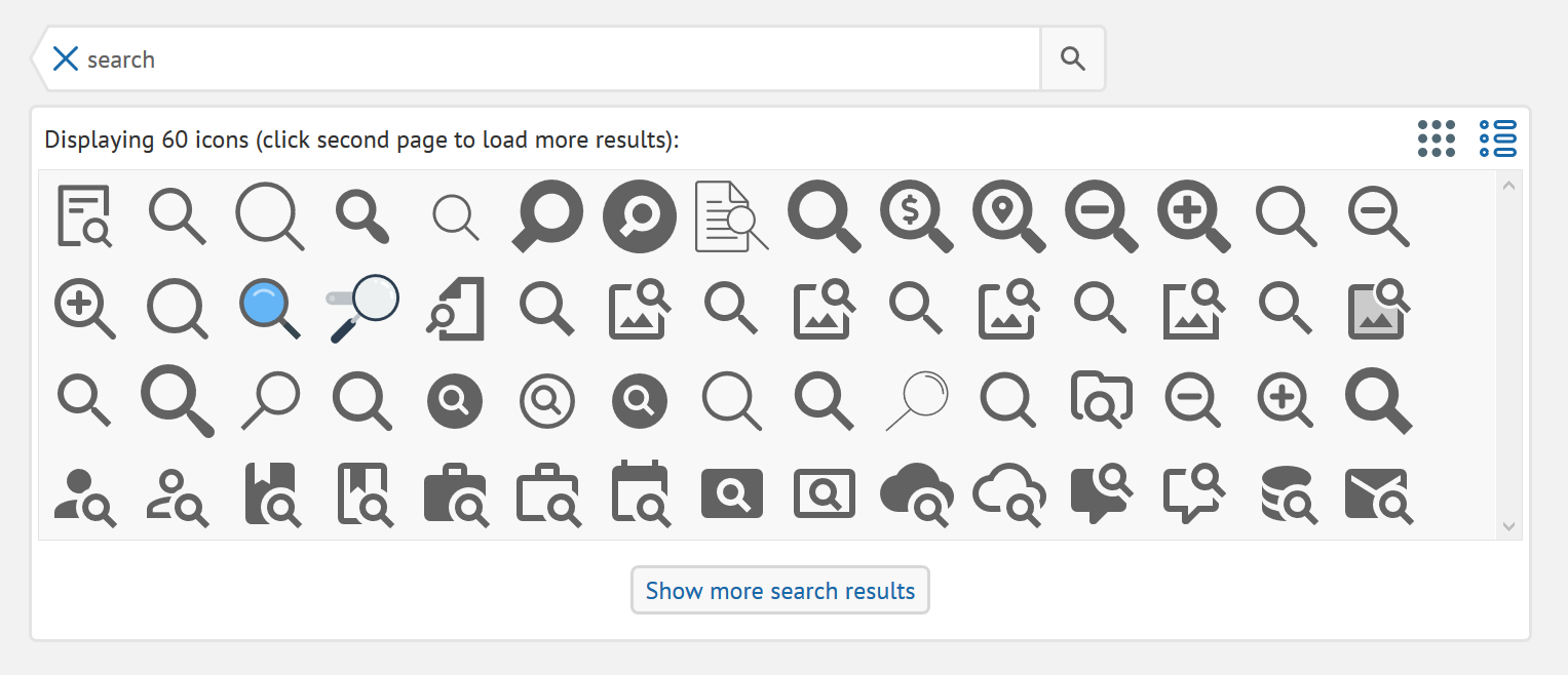 例如搜索「search」會出現很多相關的 icon。