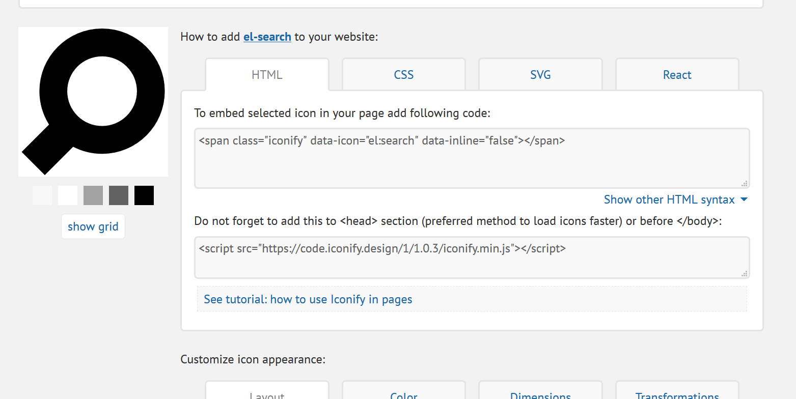 當選擇所想要的 icon 時,可以使用 HTML 來呈現