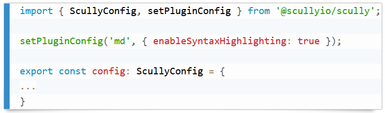 在 scully.{your project name}.config.ts 中加上以上的設定,設定enableSyntaxHighlighting: true啟用程式碼著色功能。