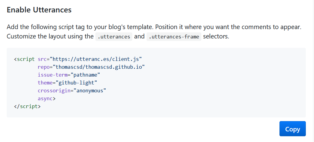 一般說來,都希望在文章下方放置留言區塊,和讀者有互動,並且我想要比較簡單,可以與 GitHub issue 整合的,最後終於找到了utterances。