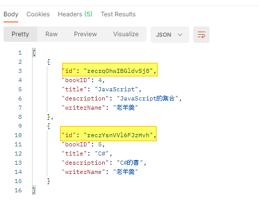 最後使用 Postman 測試,Response 的結果如上圖所示,而 id 就是 AirtTable 自動產生的 Id 鍵值。