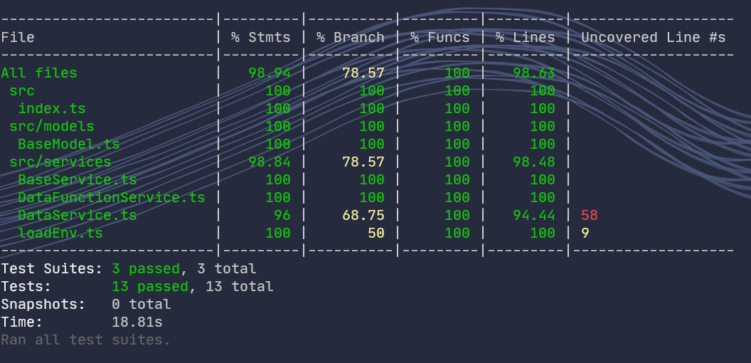 但是還有需要調整的地方,預設是沒有加入 jest.config.js 的,而這次建立的套件stools是運行在 node.js 環境上的,所以執行測試時會發生錯誤,所以指定testEnvironment為 node 即可,並且參考其他專案的設定,也一併設定需顯示測試的覆蓋度。