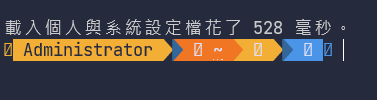目前選擇的主題是slim,這個主題有包含 Node.js 的版本,和顯示 GIT 的狀態,都是開發上所必要的資訊。之此之外,調整 Profile,加上--config參數指定主題,之後重新戴入即可。