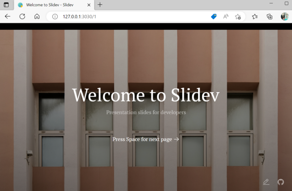 之後會開啟範例網站 http://localhost:3030 。可以確認一下 Slidev 的功能有那些。
