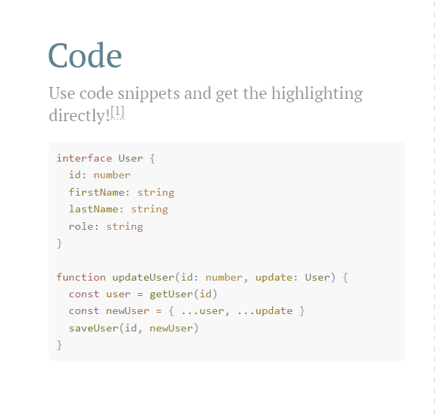 接著就是我選擇 Slidev 的原因之一,可以 Highlight 程式碼,如同上面的格式,參考文件,在後方加上程式碼的行號 {all|2|1-6|9|all},即可顯示 Highlight 的程式碼。