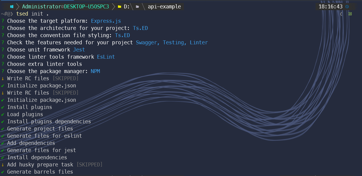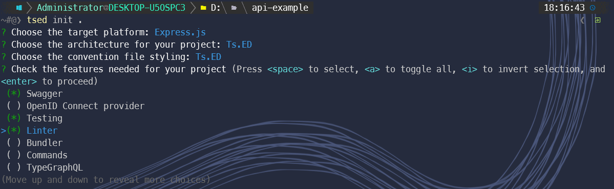 TS.ed 本身會與一些套件整合,可以勾選想要整合的功能,一般的選擇是 Testing、Linter、Swagger。
