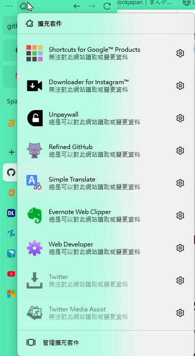 - 擴充套件使用不便:目前需要點擊左上角的圖示,才能開啟擴充套件的選單,操作上稍嫌繁瑣。希望未來的版本能優化這個部分,讓擴充套件的使用更直觀。